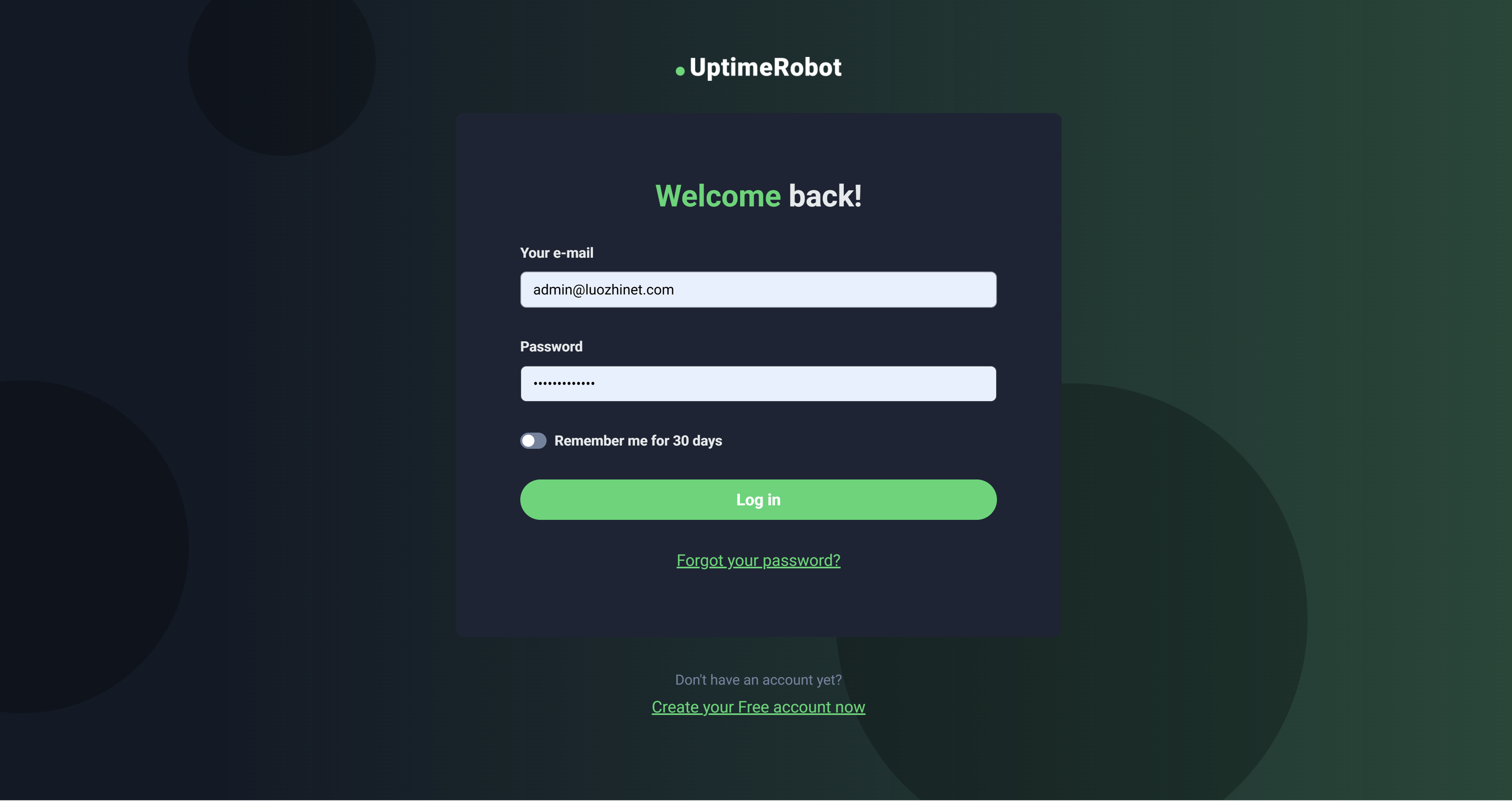 - 首先,去官网 UptimeRobot 注册 注册一个账号,使用邮箱即可完成注册。
