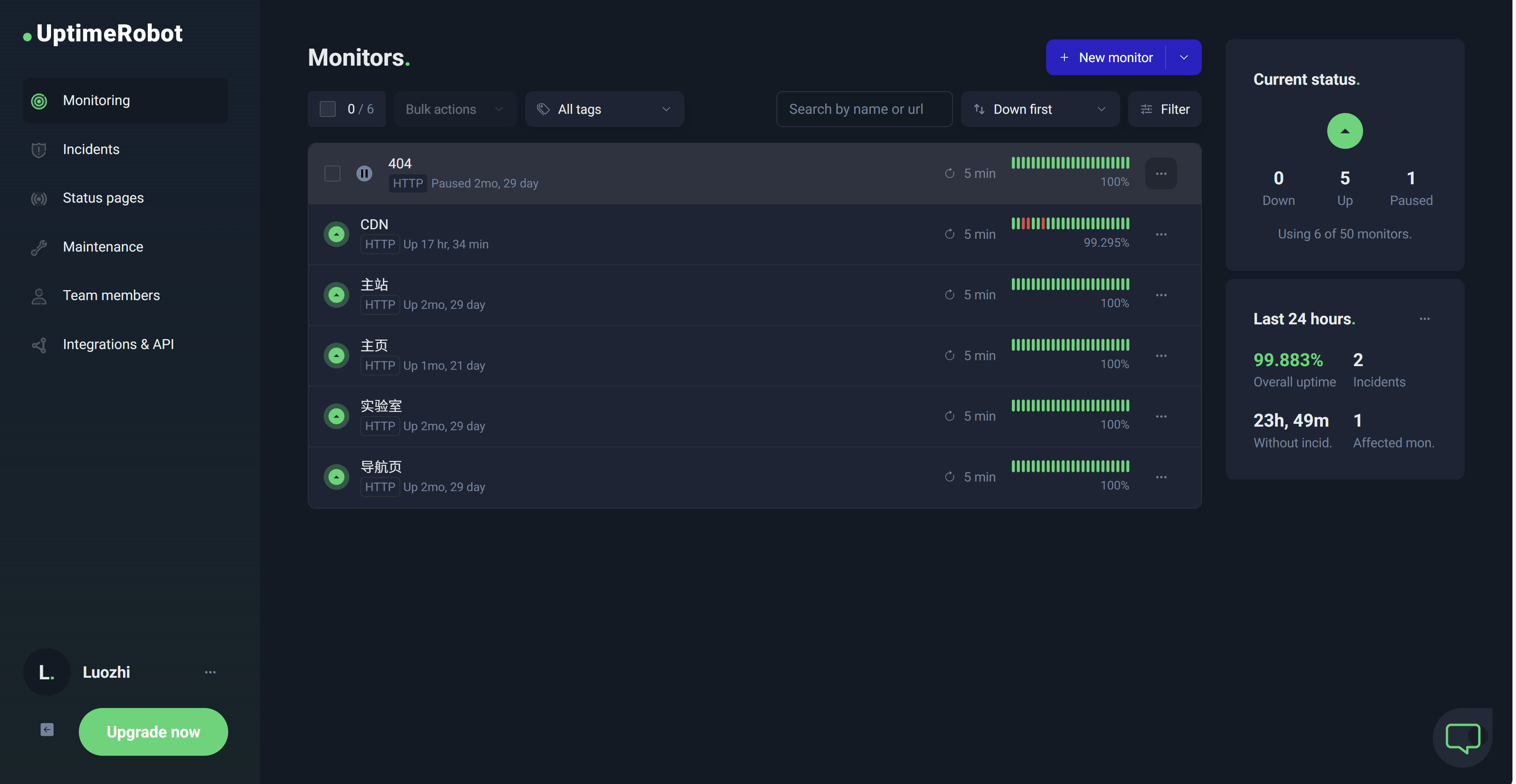 在日常运维或开发中,及时掌握网站健康状态至关重要。本篇文章分享一个基于 UptimeRobot API 开源的站点监控面板,从项目特点、部署方式到实践经验,帮助你快速上手并集成到生产环境。